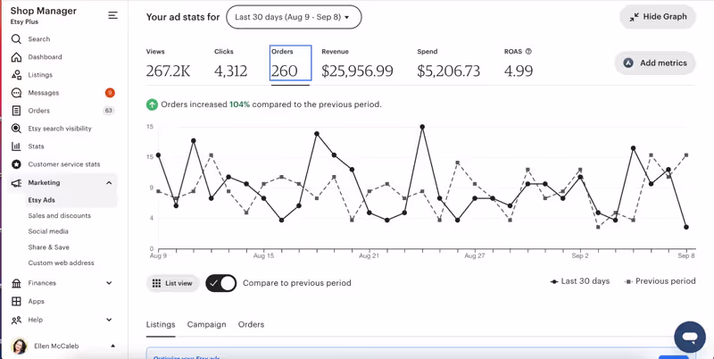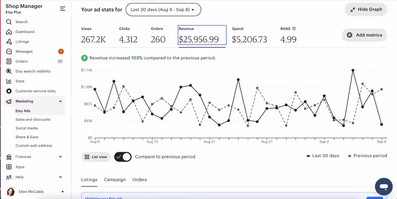 Etsy Ads Drive 103% Revenue Growth to $47,848 and 104% Increase in Orders in 30 Days