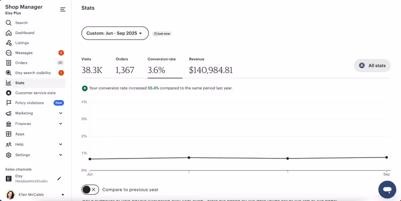 In September 2025, a focused Etsy Ads strategy delivered strong results with revenue more than doubling in just 30 days. Key improvements in orders and conversion rate also contributed to sustained growth.
