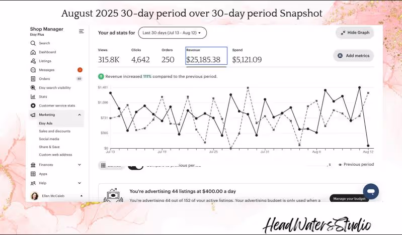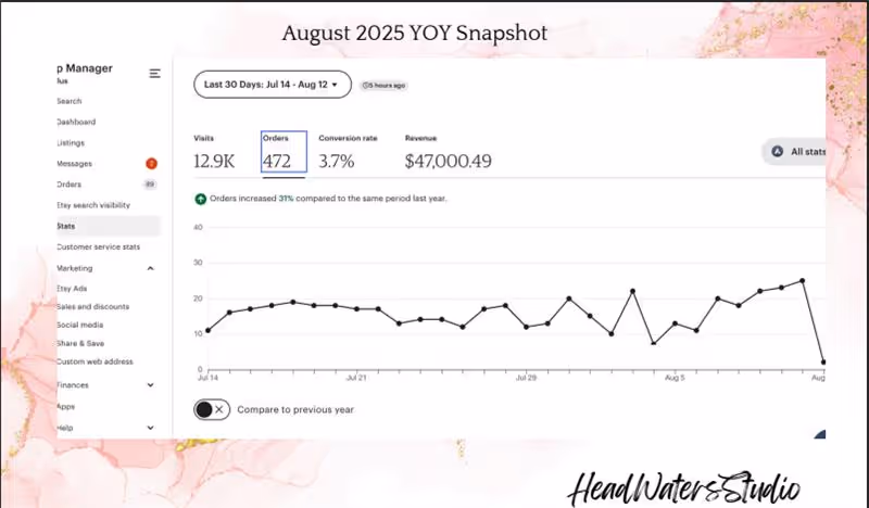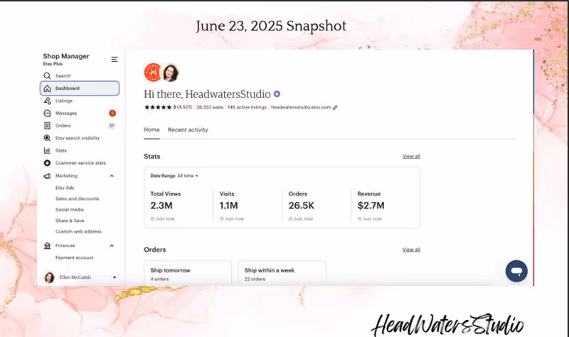 HeadWatersStudio Etsy Shop Hits $2.8M Revenue with Strong Storytelling and SEO Strategy by Q4 2025
